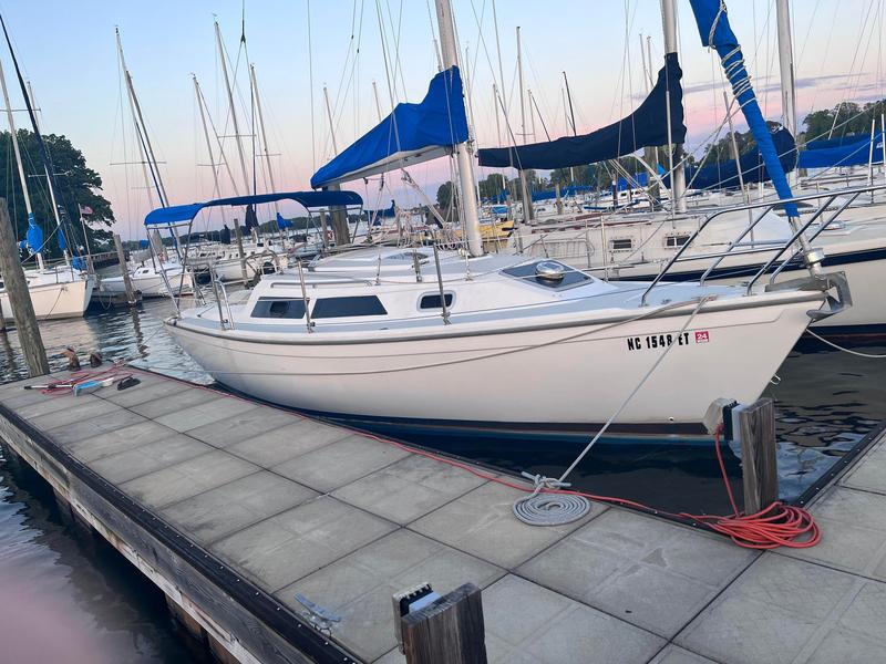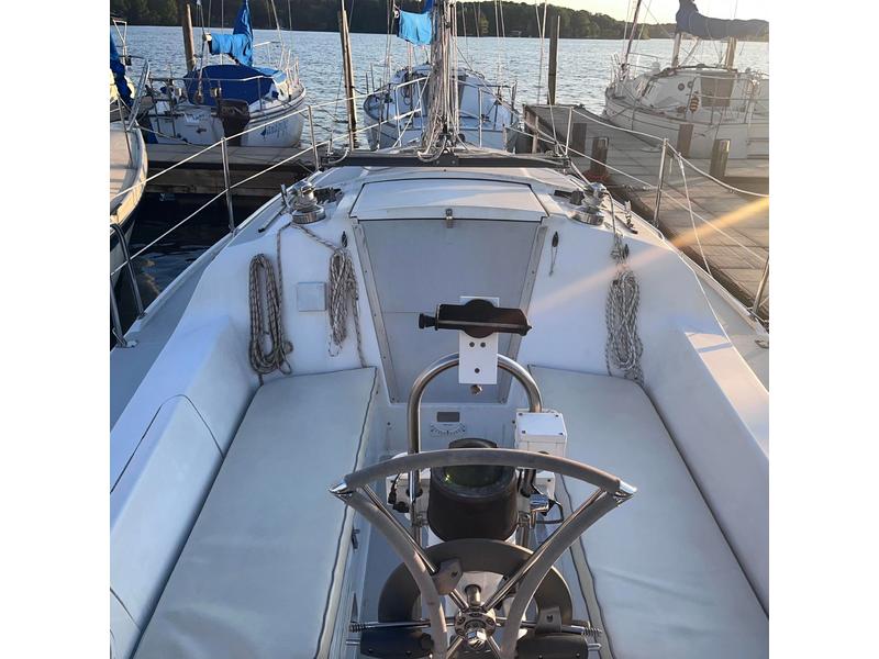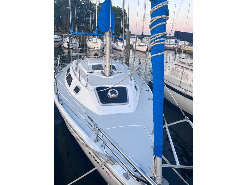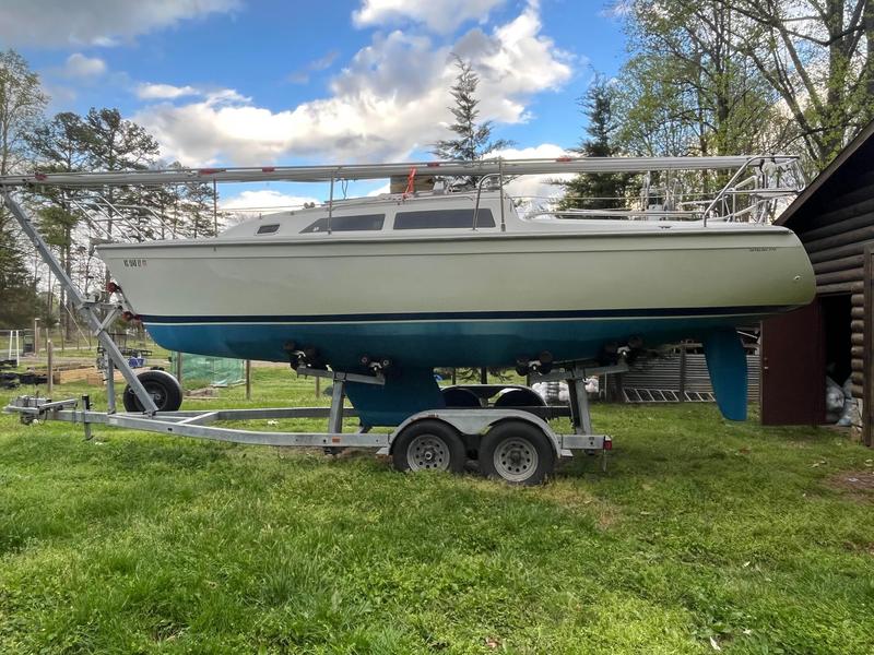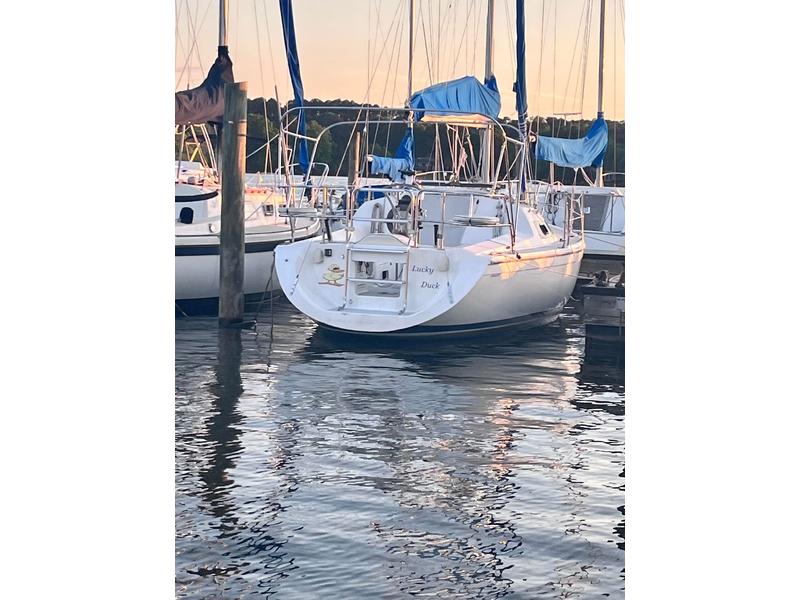 1994 Catalina 270 LE. Excellent condition and ready to sail. This boat really has it all. Perfect family boat. No limits on where you can go as boat comes with tandem axle EZ-Loader trailer. Easy access to the water with large swim ladder and sugar scoop. Ample seating on deck and in saloon. Custom Corinthian Marine teak AquaMat floor that is easy to clean and comfortable underfoot. New DRYfast open cell foam in all cushions in 2022. Folding helm for added space while at anchor. Private back berth with large bed and large V-berth. Fully functioning galley equipped with refrigerator/ice box, propane stove, sink, and storage. Standing head room in saloon, head, and private cabin. Manual flush toilet, hot/cold water shower, and sink in head. Perfect for weekends on the lake or out on the open sea. Located in the water on Lake Norman and ready for test sail. |