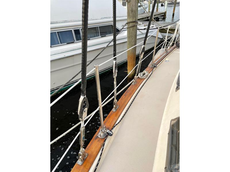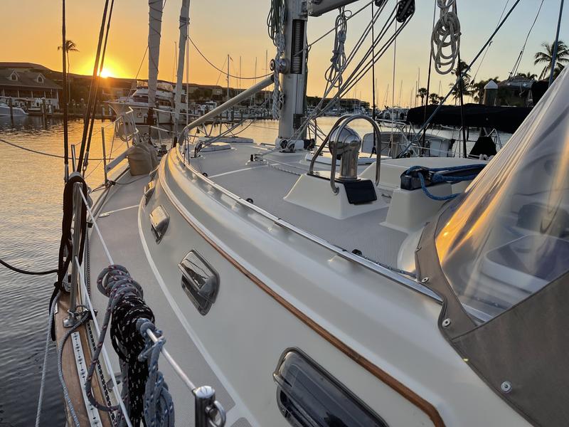 Refit/Upgrade April 2023 (Everything below!) Teak Sealer Cap Rail MPPT 150/50, Victron smart shun (bringing the total number of MPPT Controllers to 3) Air Conditioner: March Submersible Magnetic Drive Pump 510 GPH for Air Conditioner: Groco Arg-750 Series 3/4" Raw Water Strainer W/Non-Metallic Plastic Basket Dedicated DakotaLithium batteries for the Autopilot and Navigation system charged via dc-to-dc from house bank OSea dodger windows 2 gals of Micron 66 ready to be applied once launch date is set Cutlass bearing Zincs Refit/Upgrade FEB 2022 (Everything below!) Navigation Vesper Marine Watchmate Vision2 AIS Transponder with Built-in WiFi B&G RAM-T2-12V Pilot Ram B&G Zeus3 7 Multi Function Touchscreen Display Chartplotter Simrad NAC-3 Autopilot Core Pack B&G Triton2 Autopilot Controller NavPod Simrad NSS7 Evo3 / B&G Zeus3 7 RailMount B&G WS320 Wireless Wind Sensor Compass dome and oil Motors Torquedo 1103 outboard engine Suzuki 6hp 2022. 1 engine hours. Freshwater flushed and ran dry for storage. Yanmar 55 hp (4300 Hours) Raw water pump Oil pan Wire harness Oil cooler 100 amp Balmar Alternator Balmar 618 Charge Controller Dip Stick Clear Engine panel cover 30 Gal Fuel Bladder 2 x 5 Gal Diesel Jerry Cans 1 x 5 Gal Jerry can Petrol/Gasoline Propeller Sails, Rigging, Core Quantum Genoa - Hydra Net Radial 120% Quantum Main Challenge Newport AP Colligo Dyneema Standing Rigging installed by Ocean Rigging Stainless wire for genoa furlers and staysail furlers Running rigging - Dyneema core Spinlock clutches Preventer Boom Brake Harken Blocks Restuff packing glands on rudder shaft and prop shaft Aircon seacocks Interlux Interprotect 2000 Micron 66 bottom paint Folding Lewmar helm Anchoring Rocna Vulcan 25kg ACCO Grade 43 (G4) Domestic High Test ISO 5/16" Chain - 275 ft S1 Mantus Swivel 17 lbs M2 Galvanized Steel Mantus Anchor (M2GV17) Mantus Anchor Bracket (MANBRACKET) ULTRALINE Flat Rope Reel with 200 ft. Dyneema / Floating Line Maxwell VWC/VWCLP 800 Windlass Rebuild Spare Never Used - Maxwell VWC Series VWC1000 Vertical Windlass - 5/16 Inch HT & BBB Electrical